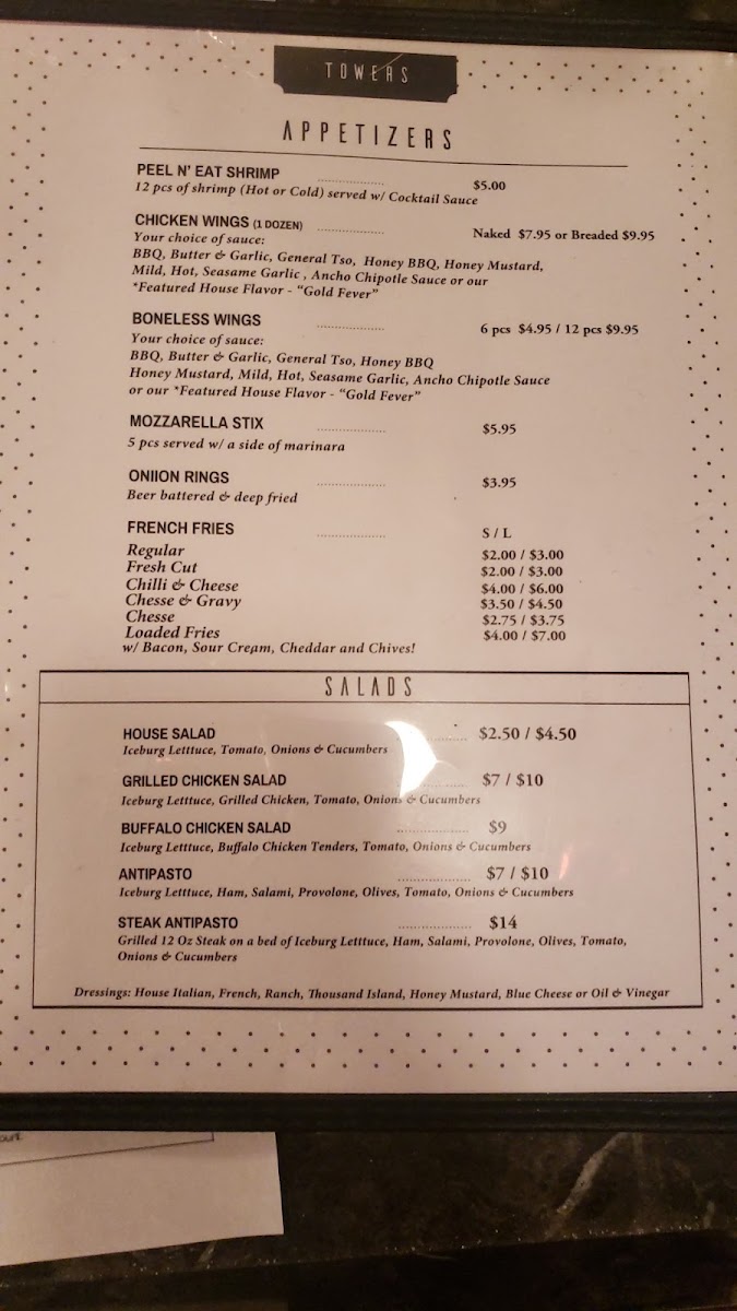 The menu at Towers Bar & Restaurant offers a straightforward and inviting selection of casual bites that complement its relaxed, friendly atmosphere. You’ll find classic bar favorites alongside comforting small plates, perfect for unwinding whether you’re stopping by for a quick lunch or settling in for an evening with friends.